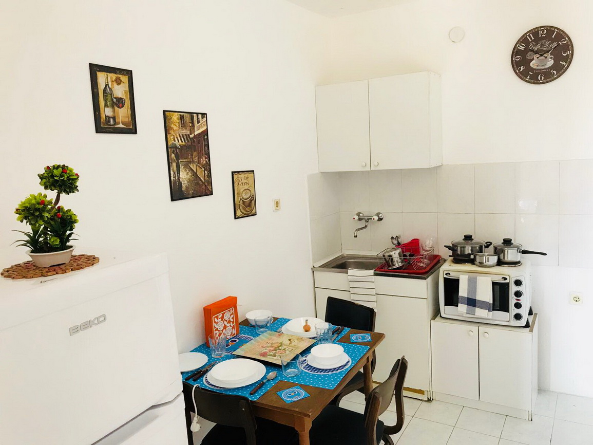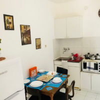 Кроме своей ванной в его состав входит и кухня с столовой оборудована холодильником, мини плитой, столом и стулями, посудой и столовым прибором и прибором для приготовлени блюда.